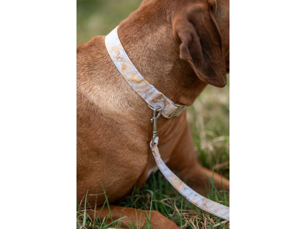 Bílé MARBLE vodítko se hodí pro každého pejska! Tvůj parťák v něm bude za hvězdu na každé procházce. Pořiďte si k němu i stejnobarevný obojek, ať to máte komplet! Bílo-zlatý marble vzor se skvěle hodí i na svatební den.
