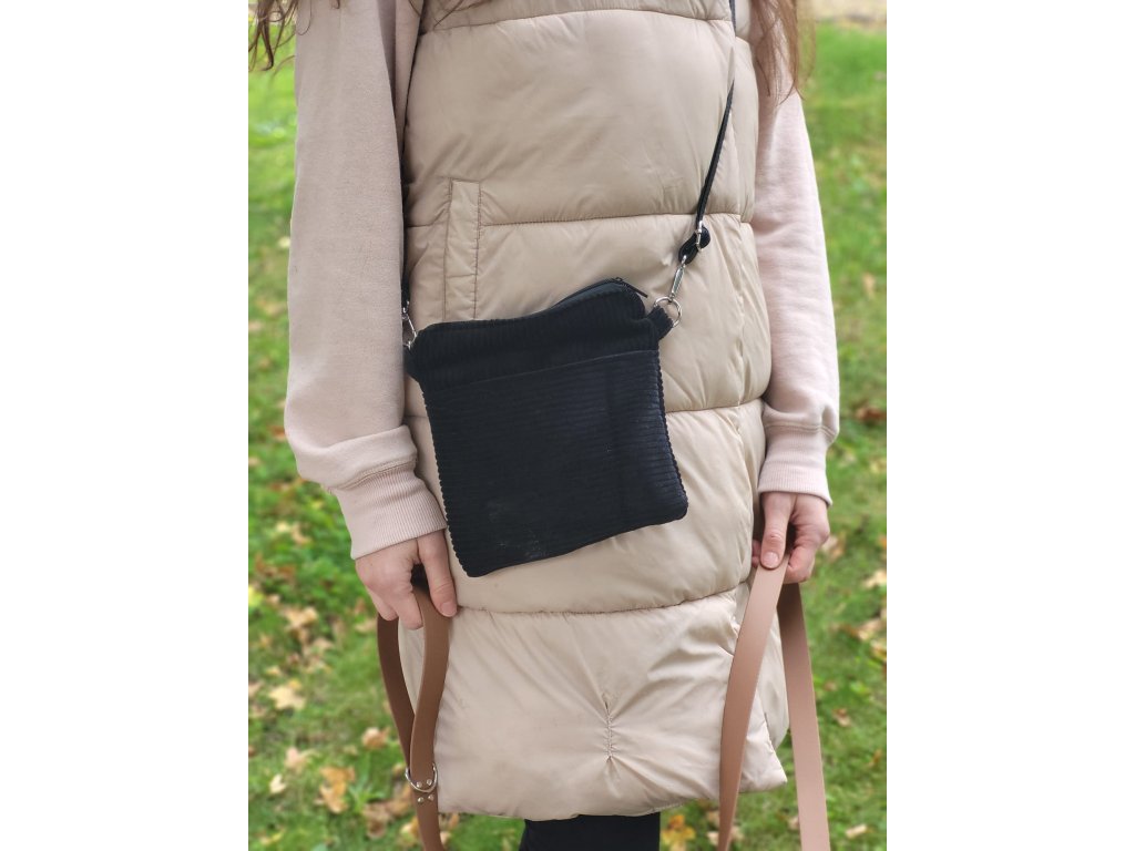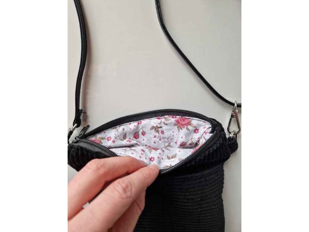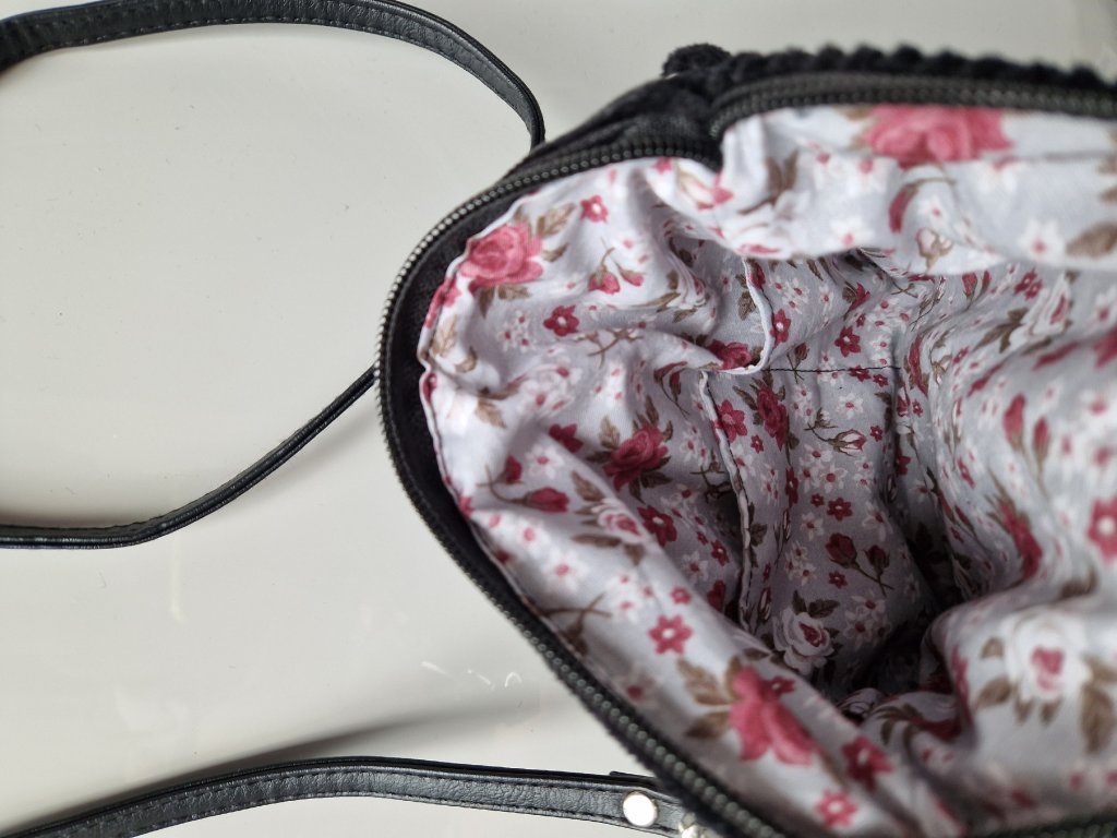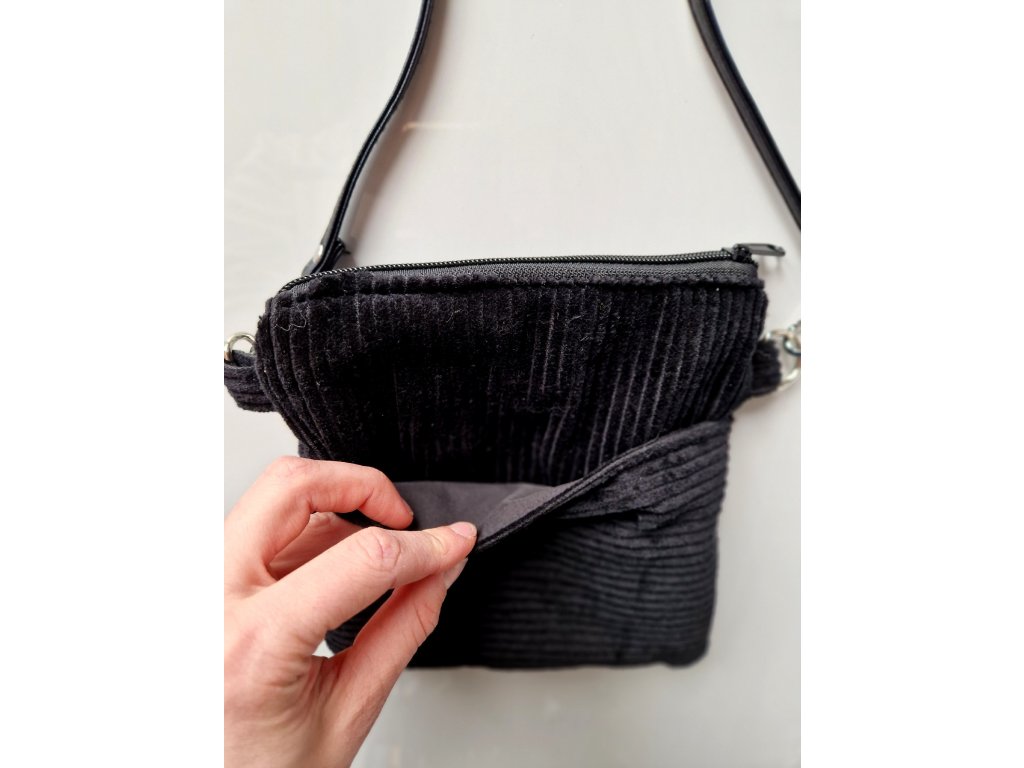 Uvnitř se nachází 2 menší kapsičky na telefon, krém, lesk na rty nebo cokoliv jiného.
