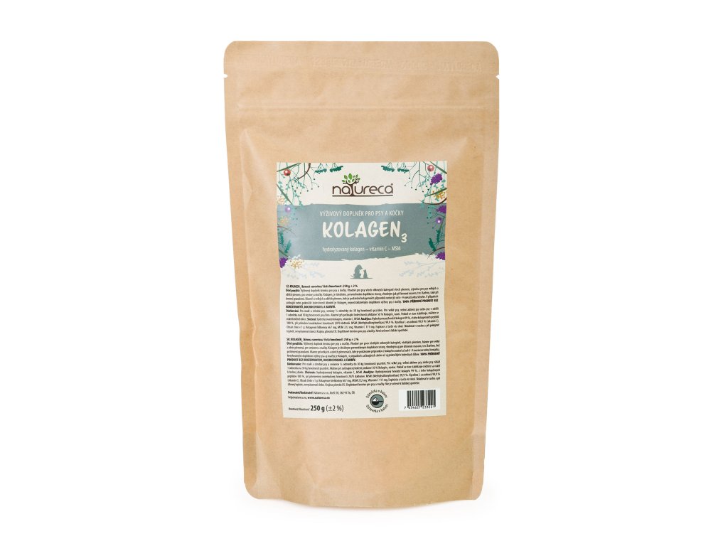 K čemu je kolagen dobrý? Jedná se o výživový doplněk krmiva pro psa a kočky. Vhodné pro psy všech věkových kategorií všech plemen, zejména pro psy velkých a obřích plemen a pro seniory. Kolagen 3 je ideálním, preventivním doplňkem stravy, vhodným jak při krmení masem, tzv. Barfem, tak také při krmení granulemi. Hlavně u velkých a obřích plemen, kde je podávání kolagenních přípravků nutné již od 6-9 měsíců věku štěněte. Nepostradatelným doplňkem výživy psa i kočky je Kolagen 3 v případech začínající nebo už i pokročilé bolestivosti kloubů.
