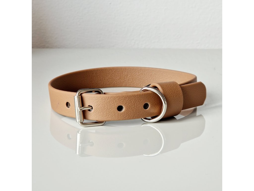 Obojek z voděodolného materiálu. Je stylový i elegantní, můžeš ho namočit i zašpinit, dá se jednoduše vyčistit.