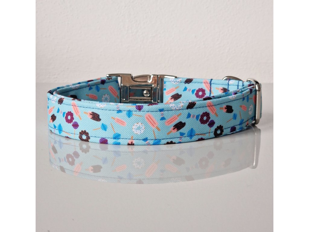Vyrobený je z pevného popruhu, který je schovaný v nepromokavé látce. Všechny vzory pochází z naší vlastní dílničky, látky jsou kvalitně potištěné přímo v České republice. Všechny komponenty na obojku jsou pevné kovové. Zapínání je opatřeno "quick release" mechanismem, takže manipulace s ním je velmi jednoduchá.