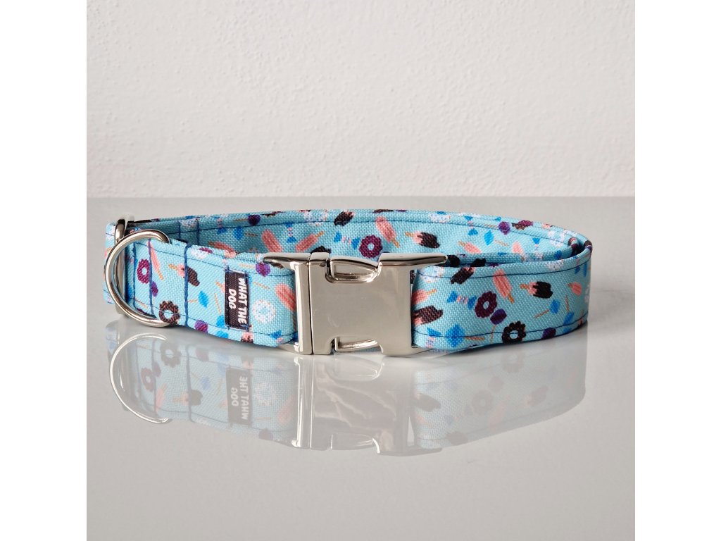 Obojek SWEET BLUE září barvami. Hodí se pro menší i větší pejsky, sedne těm se světlejší i s tmavší srstí.