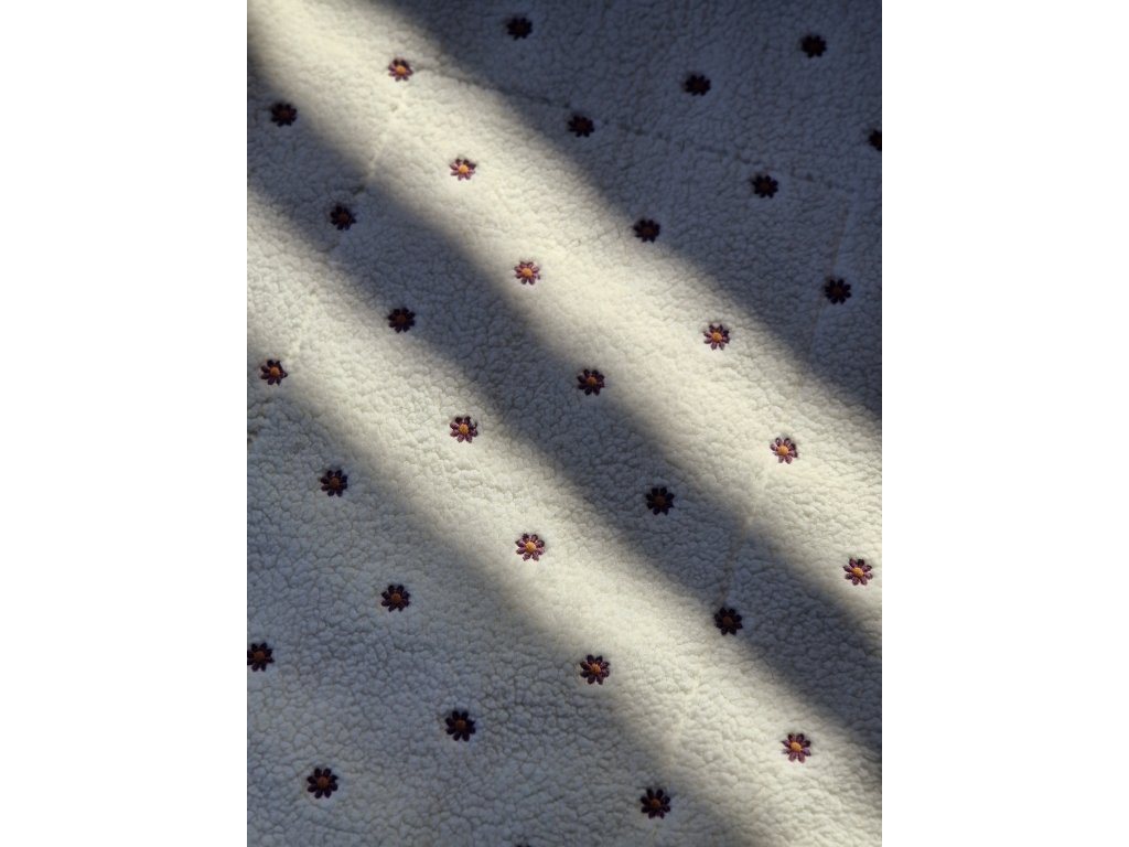 Horní část je ušita z měkkého beránka Teddy pro pohodlné ležení. Na spodní straně je šedá kočárkovina- odolný materiál, kterému nevadí styk se špinavou podlahou- odolává nečistotám i vodě a snadno se čistí.