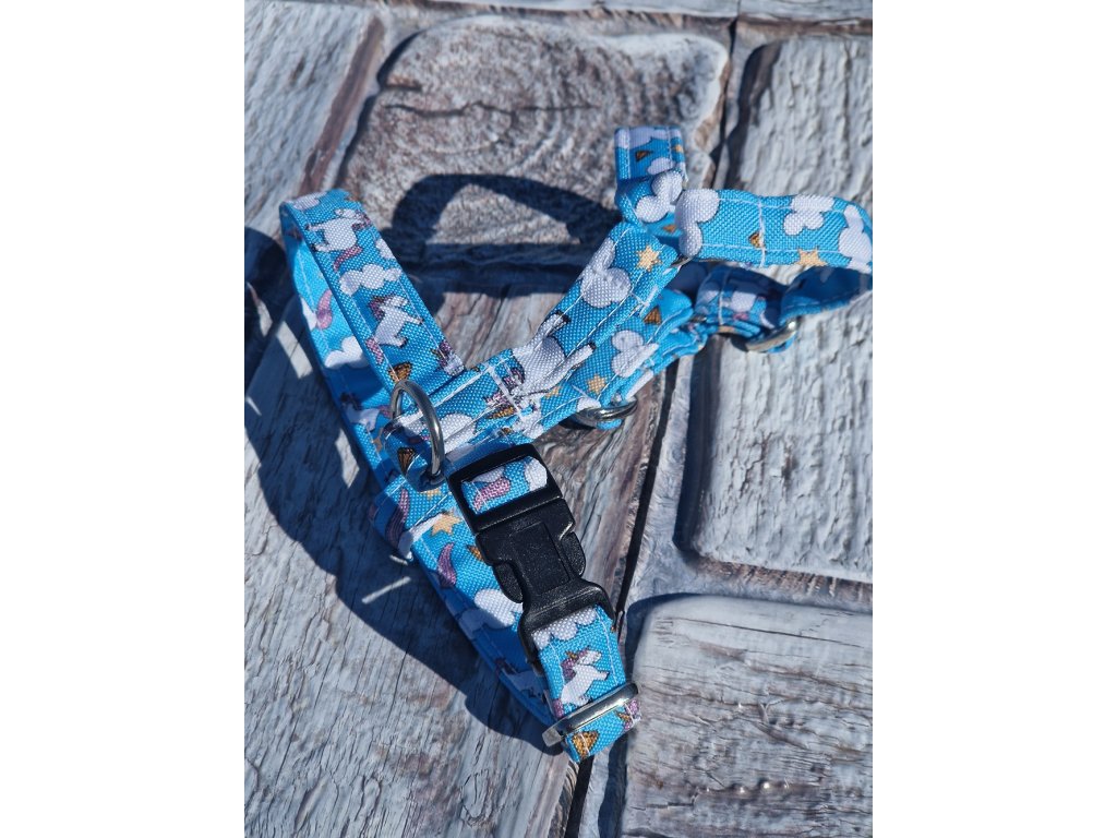 Postroj JEDNOROŽCI. Hodí se pro menší i větší pejsky, sedne těm se světlejší i s tmavší srstí.