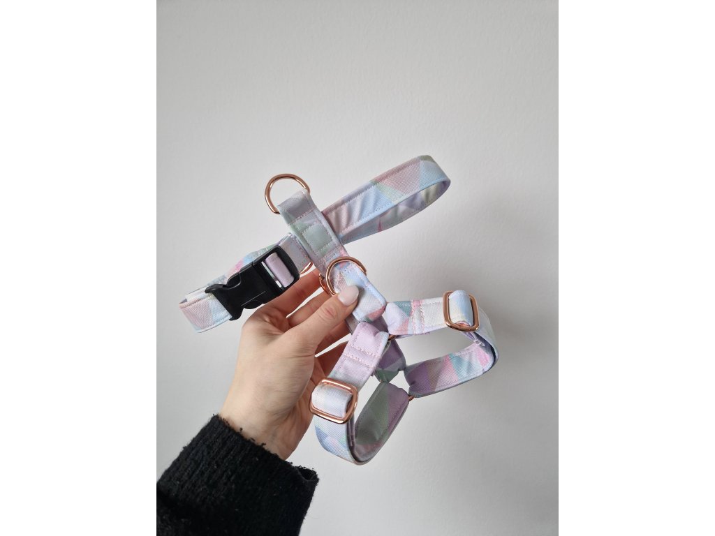 Postroj LOVELY. Hodí se pro menší i větší pejsky, sedne těm se světlejší i s tmavší srstí.