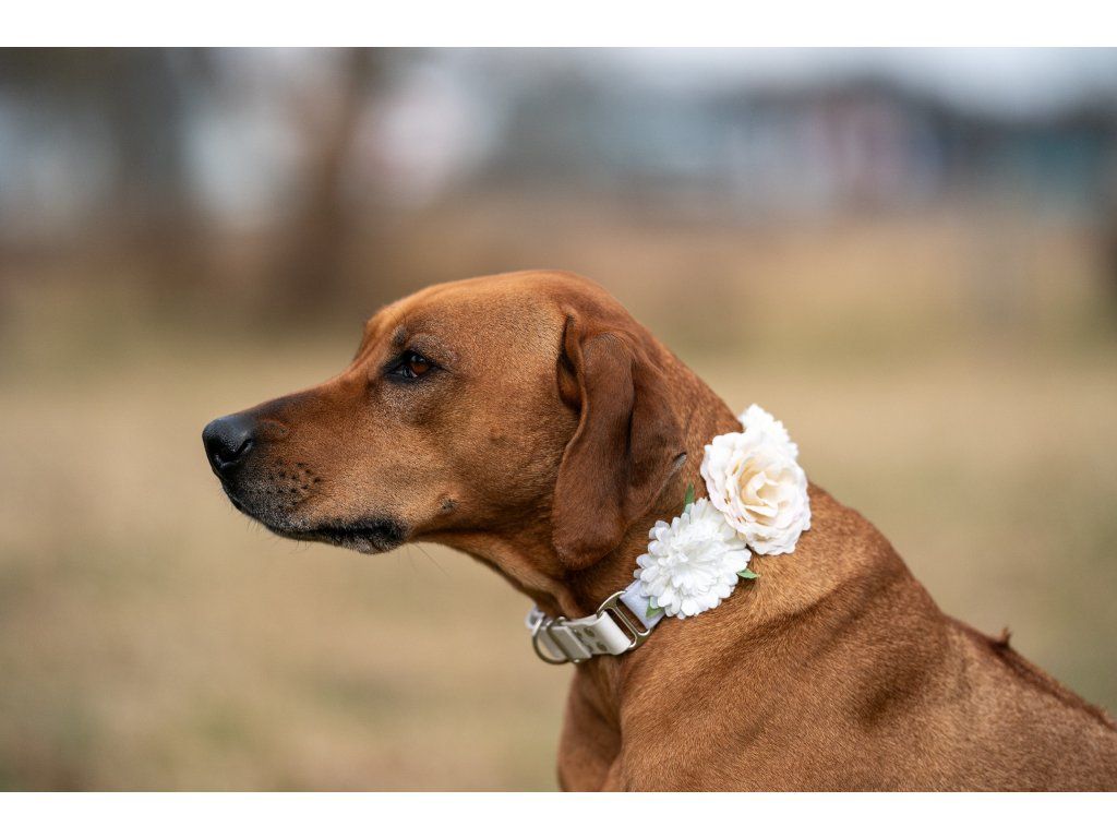 Elegantní detail, který povýší svatební den na skutečně výjimečný okamžik. Tento svatební obojek pro psy s realistickými bílými květinami je navržen pro ty, kteří chtějí, aby i jejich čtyřnohý společník byl plnohodnotnou součástí slavnostní chvíle – stylově, vkusně a s důrazem na kvalitu.