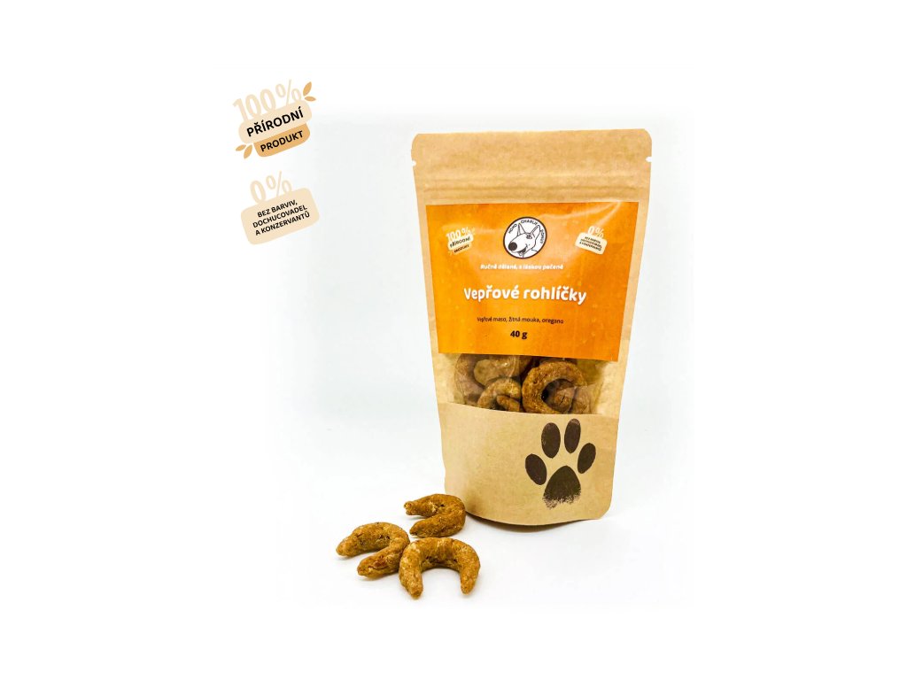 Vepřové rohlíčky s oregánem, které napomáhá proti plynatosti střev a příznivě působí na zažívání psů.