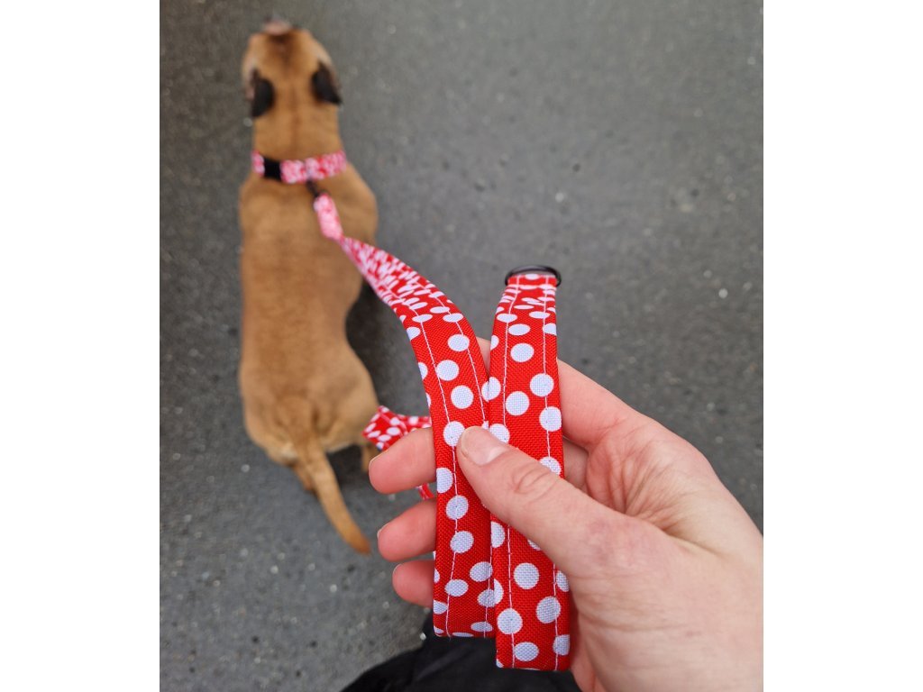 Stylové vodítko DOTS v červené barvě s bílými puntíky se hodí pro všechny pejsky! Tvůj parťák v něm bude za hvězdu na každé procházce. Pořiďte si k němu i stejnobarevný obojek, ať to máte komplet!