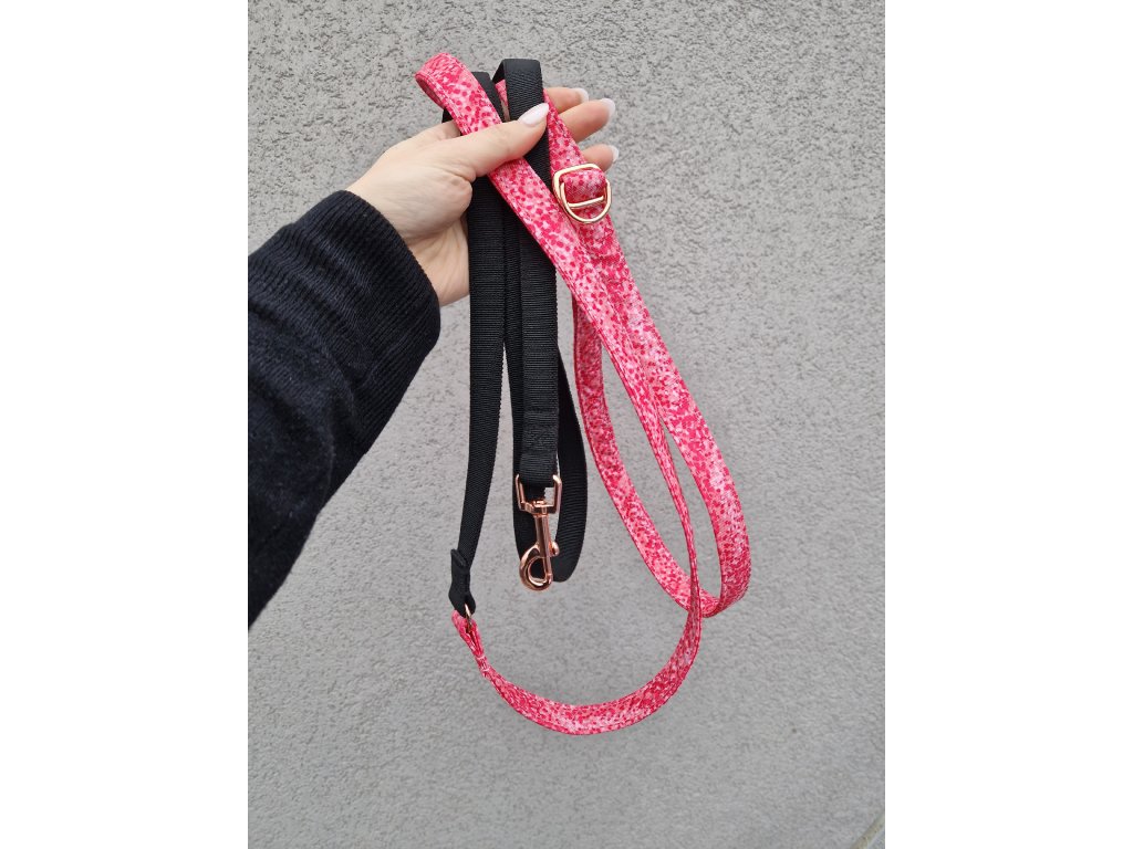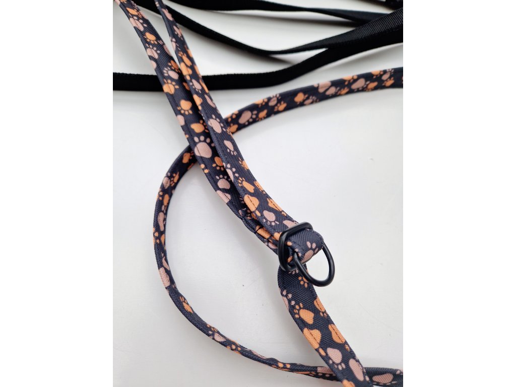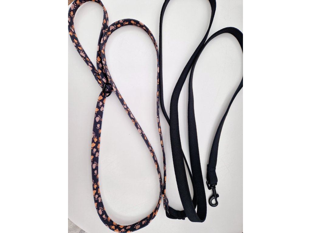 První část je nastavitelná s potiskem nebo s barevnou látkou. Můžeš si díky tomu vodítko nastavit například kolem pasu, což je praktické právě při běhání. Nastavitelná část má celkem 170 cm.